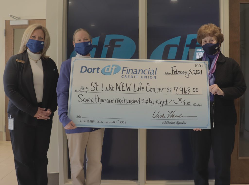 Dort Financial Credit Union is proud to announce the results of their 2020 Annual Snowman Sales fundraiser benefiting two local charities. The 2020 beneficiaries, selected by Dort Financial Credit Union employees, split the proceeds totaling $15,936. Funds were raised in the months of November and December from credit union members and team members. On February 3, 2021 Dort Financial Credit Union presented representatives of The Child Advocacy Team and the St. Luke N.E.W. Life Center with checks in the amount of $7,968 to each organization. Dort Financial Credit Union has contributed to the Annual Snowman Sales campaign through donations received from members throughout the holiday season for over 20 years. By purchasing a paper snowman in-branch, members are given an opportunity to make a positive impact on a local charity.